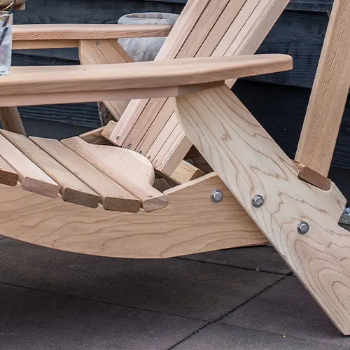 In de eerste plaats is red cedar een heel mooie houtsoort. De onderdelen van Comfy Chairs worden gezaagd uit hele planken. Hierdoor blijf je de natuurlijke kleurschakeringen zien, die het hout bevat.